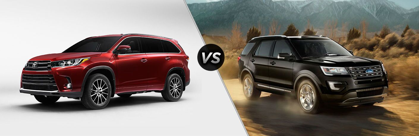 Compare the 2018 toyota highlander with 2017 ford explorer, side by side. Regardless, neither the toyota highlander nor the ford explorer are truly impressive once. The highlander hybrid is icing on the cake. 2016 ford explorer first drive review_ new style & engine, same utility. The 2017 ford explorer is above and beyond the more superior suv when compared to the 2017 highlander.