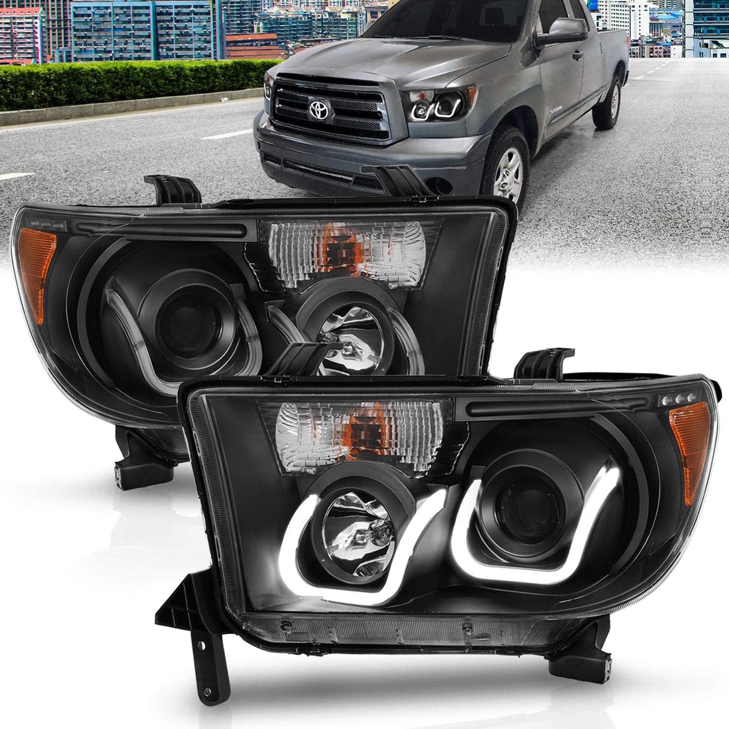 Looking for toyota tundra led headlights? High quality projector headlights w/ halo rings & led lights.these lights are made by an oe approved and iso certified manufacturer with do not come with installation instructions.professional installation highly recommended.fitment : These projector headlights provide a sharper, more focused beam of light for. These led projector headlights will only replace factory oem halogen style headlights. The item is 100% brand new in original box comes with 1 pair of black housing smoke lens projector head lights with switchback sequential led turn signal bar.